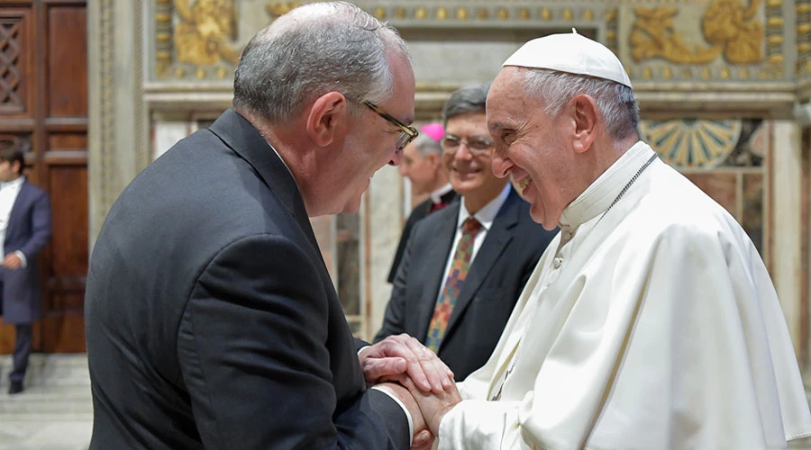 Durante el evento en el que participó el presidente del directorio de EWTN, el Papa animó a los responsables de las comunicaciones vaticanas a “comunicar con el testimonio, comunicar implicándose en la comunicación, comunicar con los sustantivos de las cosas, comunicar como mártires, es decir, como testigos de Cristo, como mártires”.