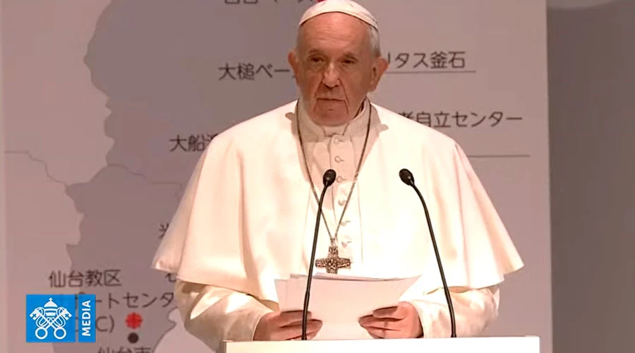 Este encuentro con ustedes es un momento importante de mi visita a Japón. Les agradezco la bienvenida. De manera especial, agradezco a Toshiko, Tokuun y Matsuki, quienes han compartido su historia con nosotros. Ellos y también ustedes representan a todos los que han sufrido de manera tan grande a causa del triple desastre —el terremoto, el tsunami y el accidente nuclear—, que afectó no sólo a las prefecturas de Iwate, Miyagi y Fukushima, sino a todo el Japón y a sus ciudadanos. Gracias por expresar con sus palabras y con su presencia la tristeza y el dolor sufrido por tantas personas, pero también la esperanza abierta a un futuro mejor. Matsuki, al terminar su testimonio, me invitaba a unirme a ustedes en oración. Hagamos un rato de silencio y que nuestra primera palabra sea rezar por las más de dieciocho mil personas que perdieron la vida, por sus familiares y por los que aún están desaparecidos. Una oración que nos una y que nos dé el coraje de mirar hacia adelante con esperanza.