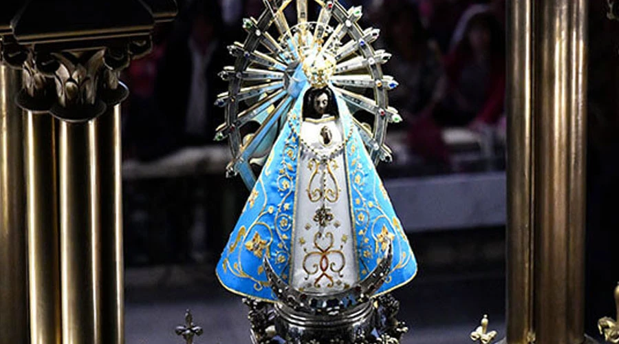 La imagen original de la Virgen de Luján será bajada de su camarín e instalada en la entrada principal del santuario para que los fieles puedan saludarla y rezar.
