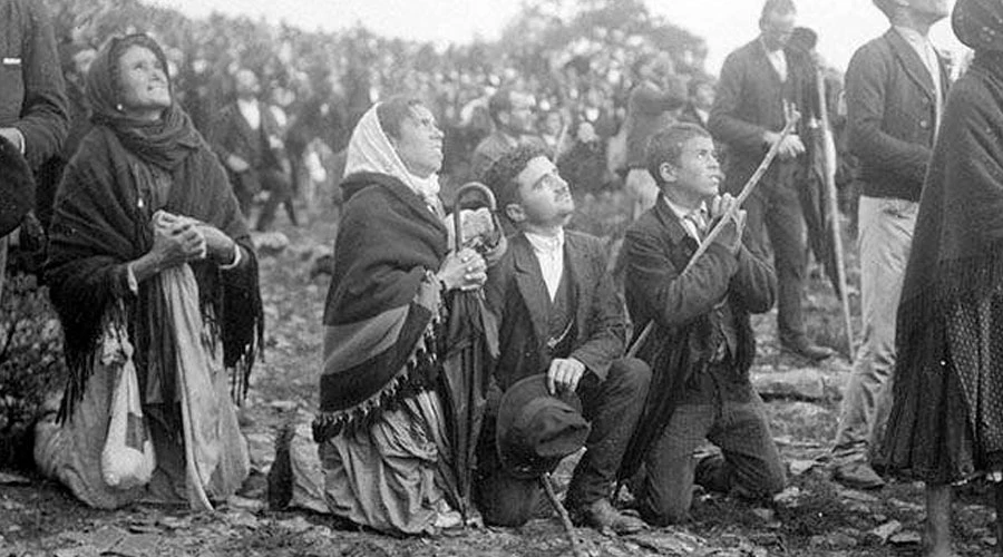 Entonces, sus rayos tomaron diferentes colores y el sol pareció caer sobre las miles de personas, que se habían puesto de rodillas.